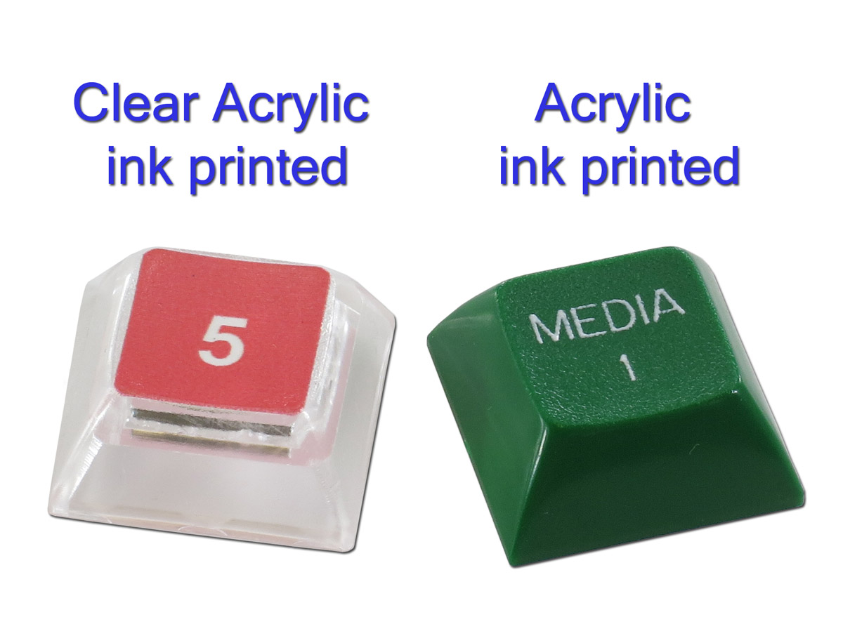 Our acrylic printed keys come in four sizes - single, wide, tall, and large 2x2. Unlimited keycaps background color options.