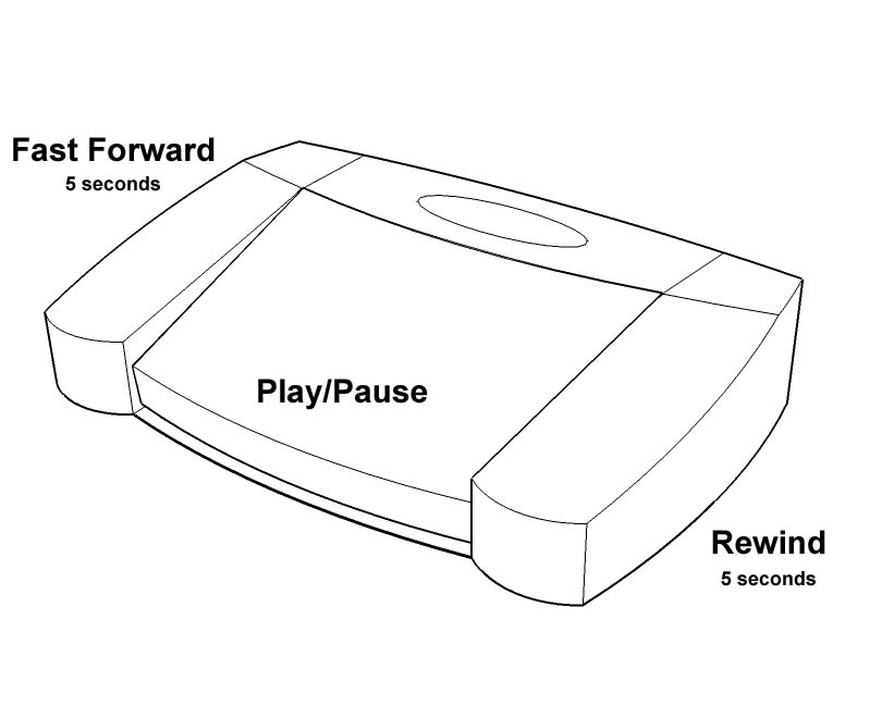 - Left pedal: Fast Forward (5 seconds per tap)