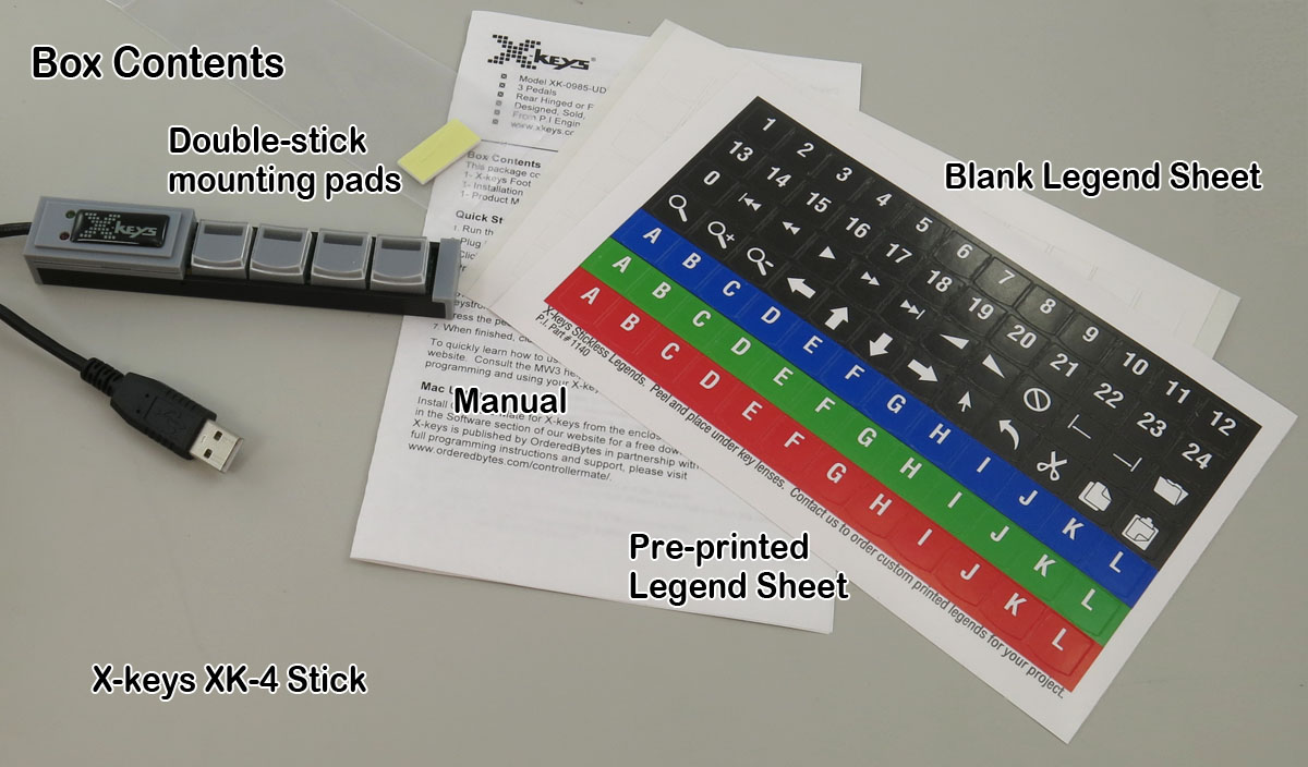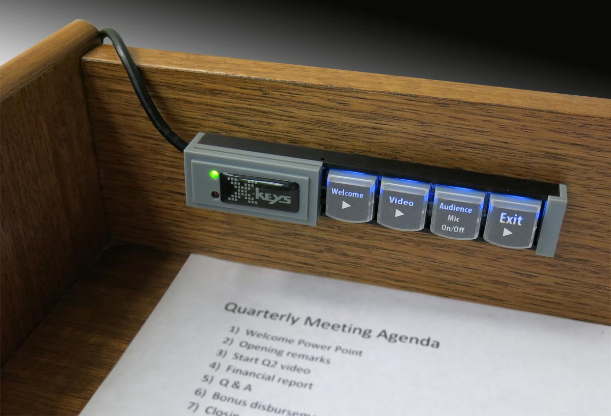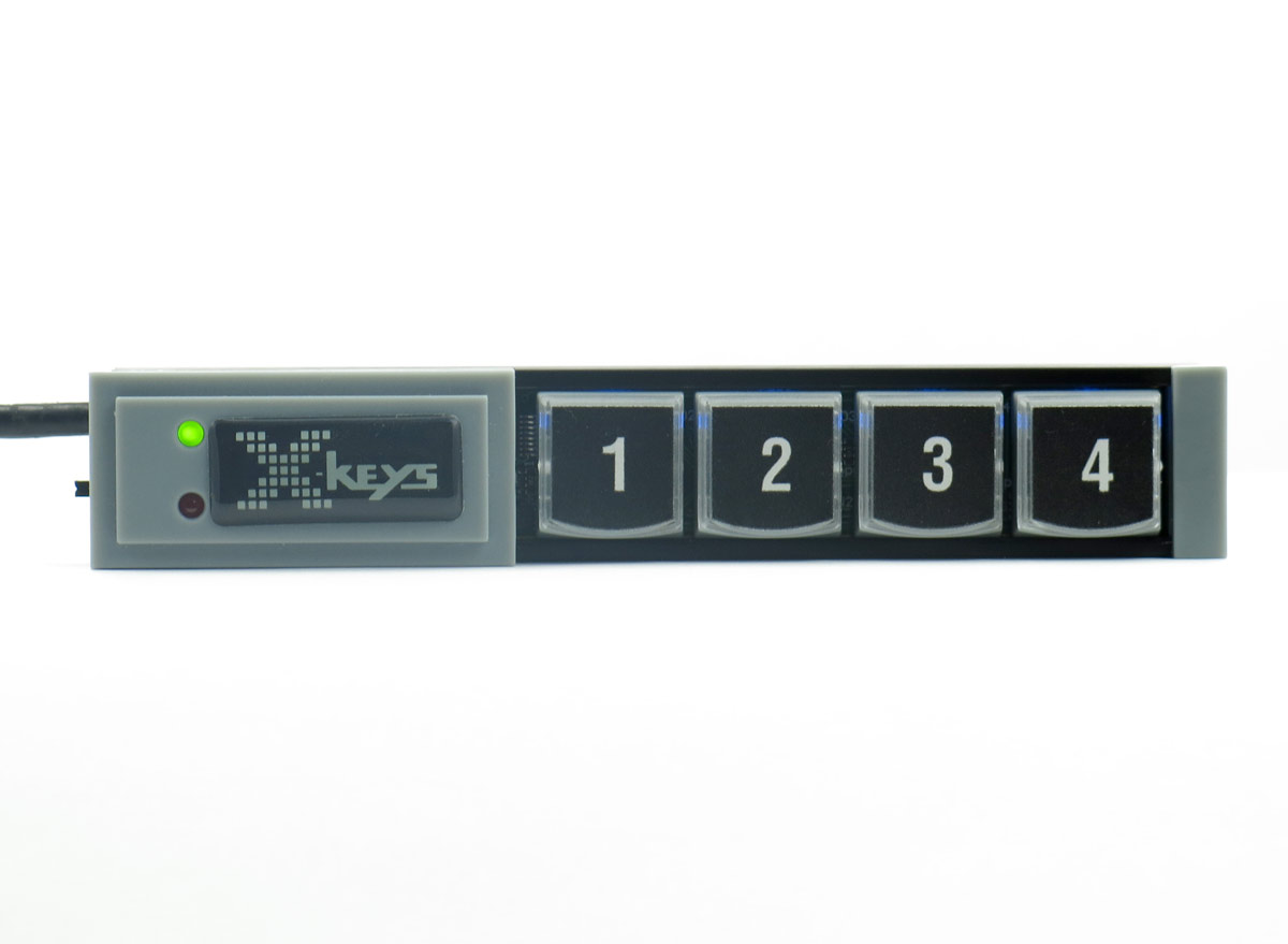 Perfect for adding a few control keys to a tight space. The XK-4 offers four programmable keys to trigger macros, shortcuts, and applications, select tools or open files or directories. The low profile, slim footprint fits nicely on a podium or under a monitor. The XK-4 provides a versatile control strip for any computer driven application.