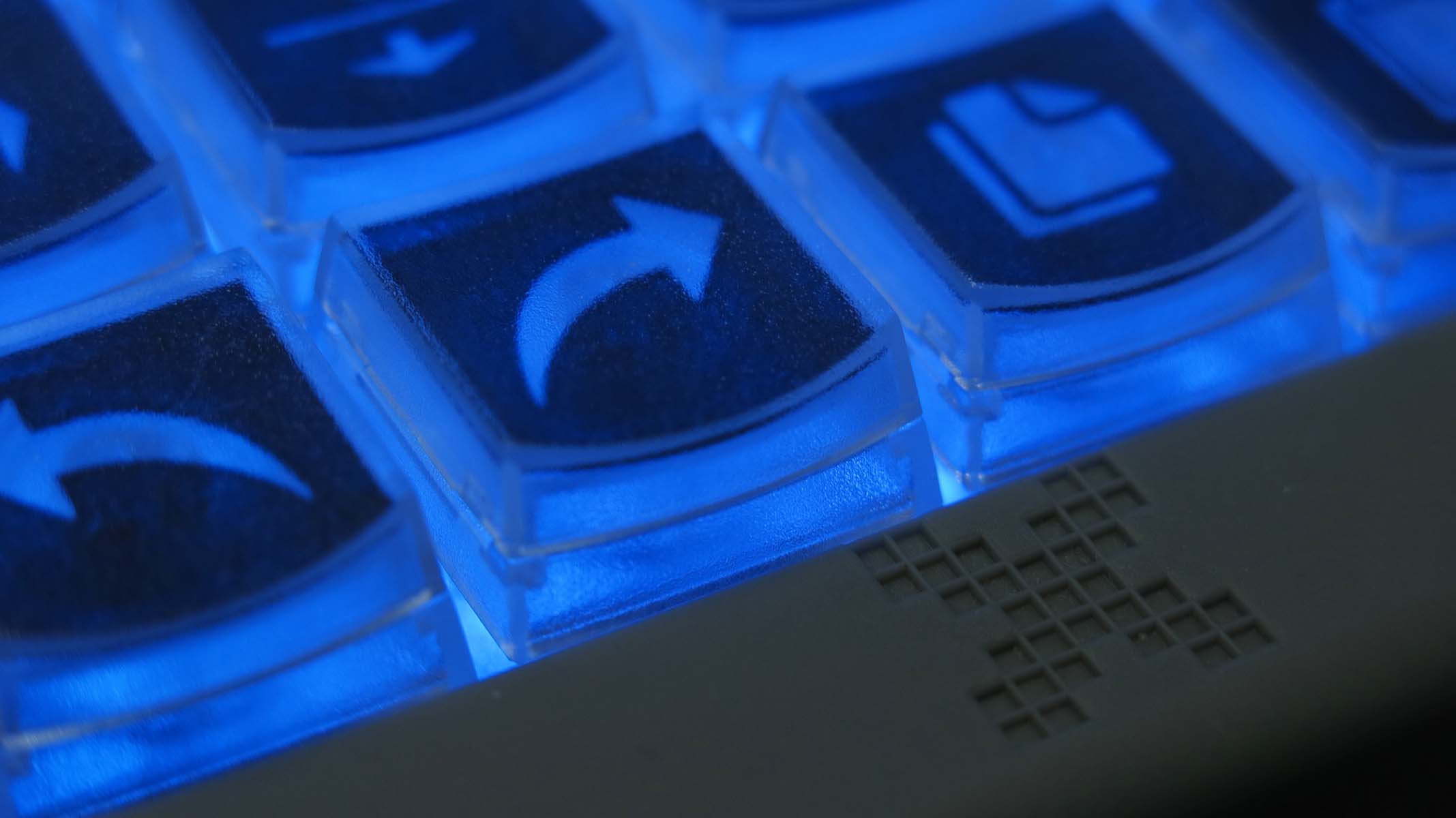 60 dedicated keys with addressable blue and red backlighting in four key groupings to create an efficient workflow control board.